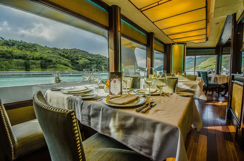 Embárquese en una experiencia de lujo con 20 cabinas dobles exteriores, todas con baño privado para su comodidad. Disfrute de cubiertas panorámicas en proa y popa, y una cubierta principal sobre el salón. El programa incluye todas las comidas, bebidas no alcohólicas e infusiones durante la navegación, guiadas por un experto bilingüe en inglés y español.
